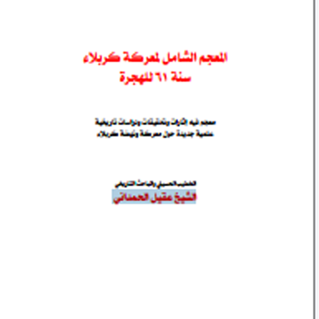 کتاب «المعجم الشامل لمعركة كربلاء سنة 61 هجریة» تألیف شیخ عقیل الحمدانی به بررسی جامع و دقیقی از واقعه عاشورا و نبرد کربلا میپردازد. در این کتاب، نویسنده به تحلیل علل بحرانهای سیاسی و اجتماعی آن زمان، نقش شخصیتهای کلیدی مانند امام حسین (ع) و یزید بن معاویه، و تأثیرات این واقعه بر تاریخ اسلام و شیعه میپردازد. همچنین، نویسنده در پی بررسی جزئیات رخدادها، به بررسی اسناد تاریخی و روایات مختلف نیز میپردازد و تلاش میکند تا تصویری روشن از این فاجعه بزرگ به دست دهد.
