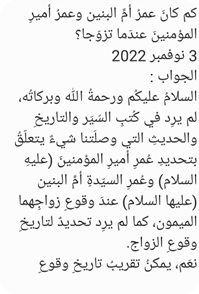کتاب “کم کان عمر السیده ام البنین علیها السلام عند زواجها من الامام علی (علیه السلام)” اثر علامه امینی است. در این کتاب، به معرفی شخصیت بینظیر ام البنین و نقش او در تاریخ اسلام پرداخته میشود. ام البنین، همسر امام علی (علیه السلام)، به عنوان زن مؤمن و فداکار شناخته میشود که با ویژگیهای اخلاقی و معنوی خود، تأثیر عمیقی بر خانواده و جامعه گذاشت. نویسنده به شایستگیهای او در زمان زندگیاش و همچنین اهمیت ازدواج او با امام علی و تأثیرات این پیوند در تاریخ اسلام و عاشورا میپردازد. این اثر به بررسی زندگی و شخصیت ام البنین به صورت جامع و دقیق میپردازد و نقش او را در تربیت فرزندانش، بهویژه عباس (علیه السلام) و دیگر امامزادگان، مورد تحلیل قرار میدهد.