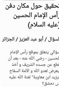 کتاب «مكان دفن رأس الإمام الحسين عليه السلام» به بررسی و تحلیل مکانهای مختلفی میپردازد که در طول تاریخ به عنوان محل دفن سر مطهر امام حسین (علیهالسلام) معرفی شدهاند. این اثر با استناد به منابع معتبر تاریخی و روایی، اقوال مختلف را مورد بررسی قرار داده و به تحلیل صحت و سقم آنها میپردازد.